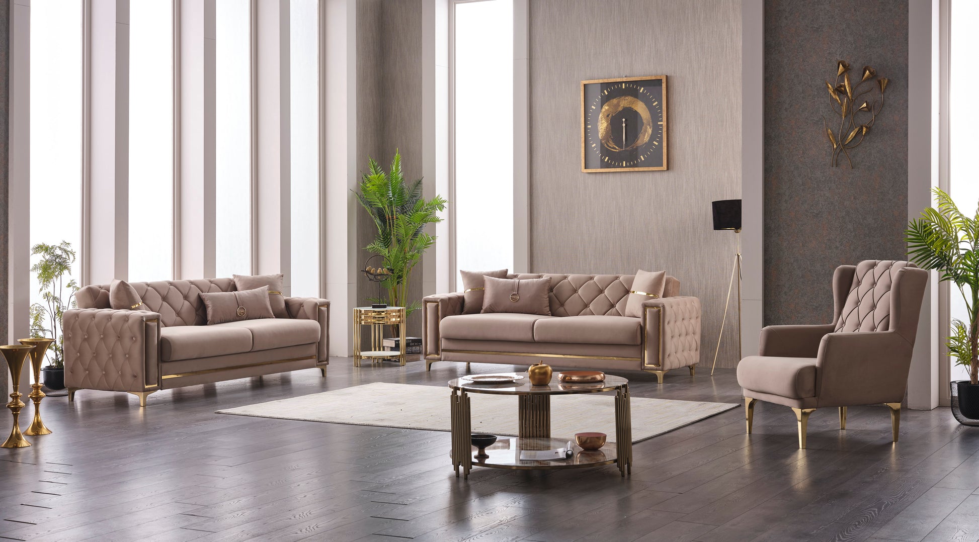 Die Sitzgruppe "Bolivia" in edlem Grau überzeugt durch ihre harmonische Kombination aus Ästhetik und praktischem Nutzen. Diese facettenreiche Sitzgruppe besteht aus einem großzügigen 3-Sitzer-Sofa, einem gemütlichen 2-Sitzer-Sofa und einem passenden Sessel, wahlweise in Grau oder Beige erhältlich.