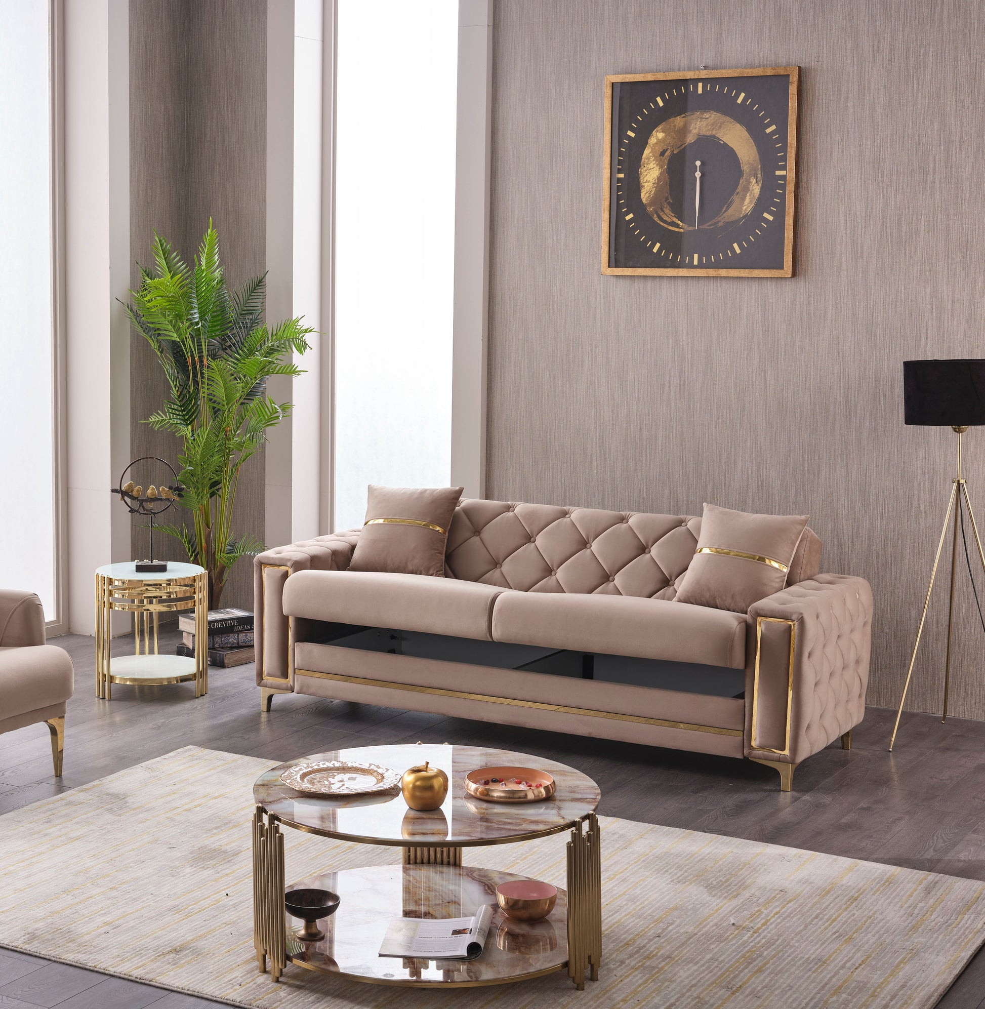 Darüber hinaus verfügt diese Sitzgruppe über großzügigen Stauraum, der geschickt in das Design integriert ist. Hier können Sie Decken, Kissen oder andere Utensilien ordentlich verstauen und haben sie dennoch jederzeit griffbereit.