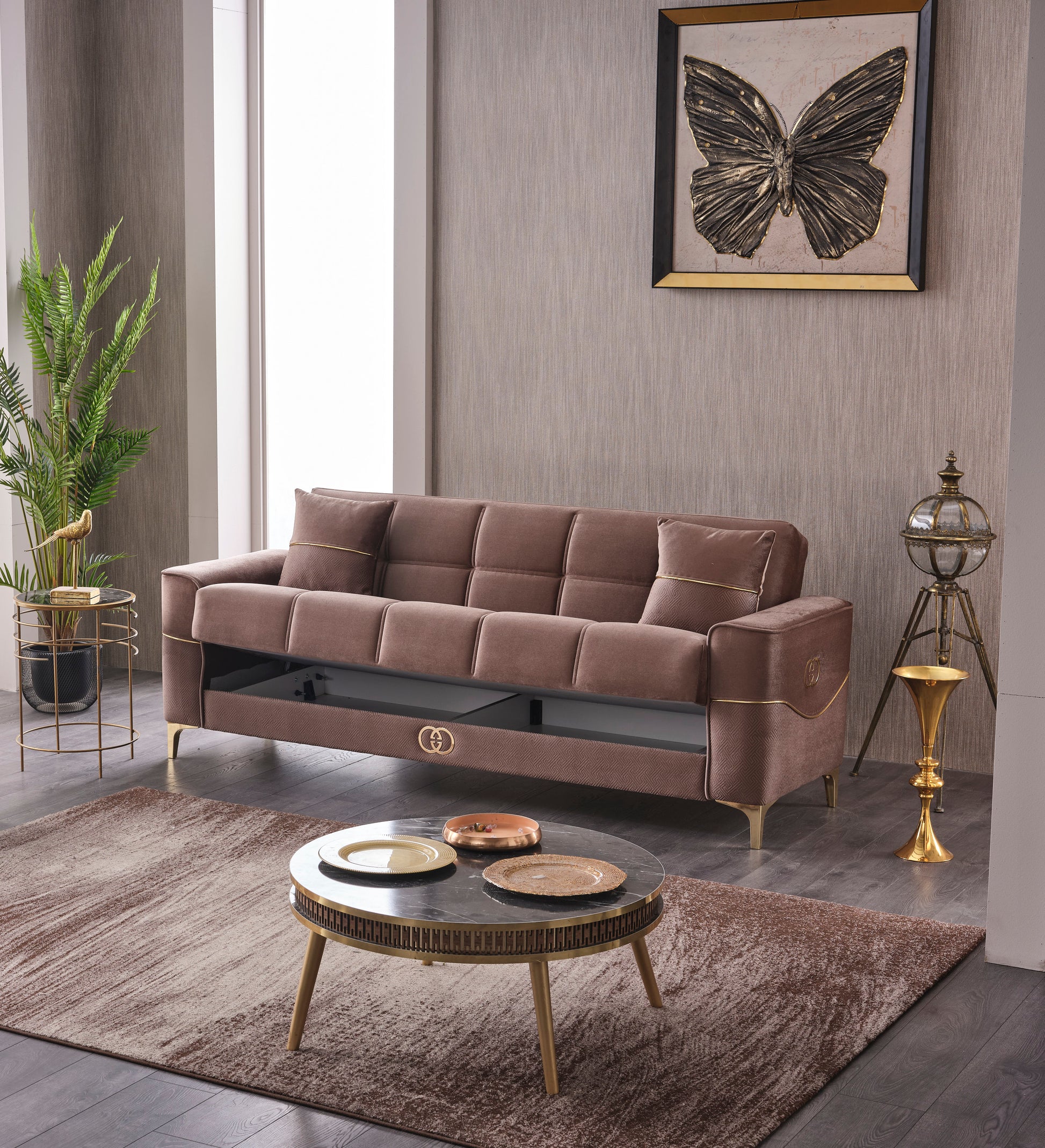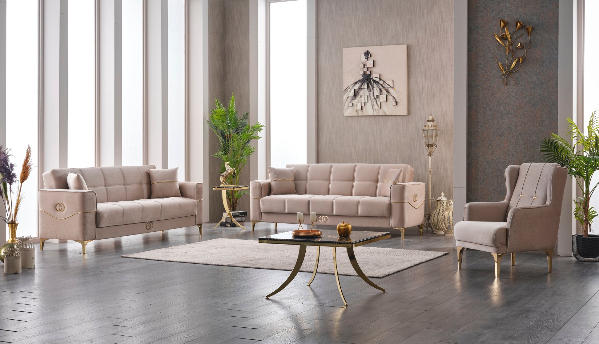 Ein weiteres Highlight der Sitzgruppe Clara ist der integrierte Stauraum. Unter den Sitzflächen der Sofas und des Sessels befindet sich ausreichend Platz, um Decken, Kissen oder andere Utensilien ordentlich zu verstauen. Dieser zusätzliche Stauraum trägt zur Organisation Ihres Wohnraums bei und sorgt dafür, dass Ihre Wohnzimmeratmosphäre aufgeräumt bleibt.